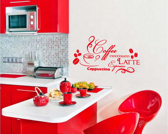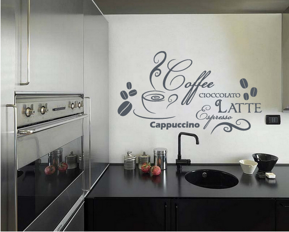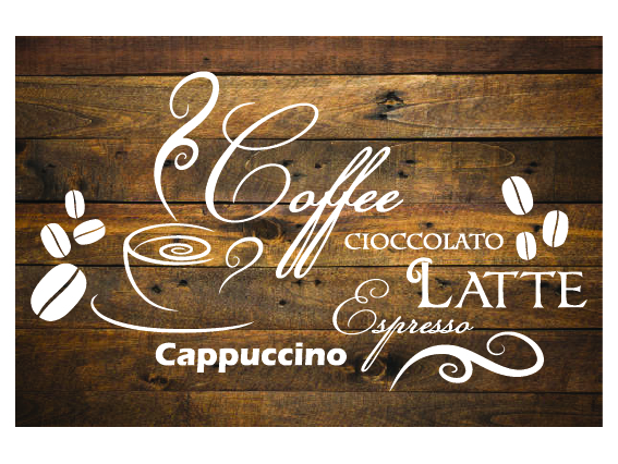 Kávé Coffee feliratok, kávészemek kávéscsésze faldekor falmatrica